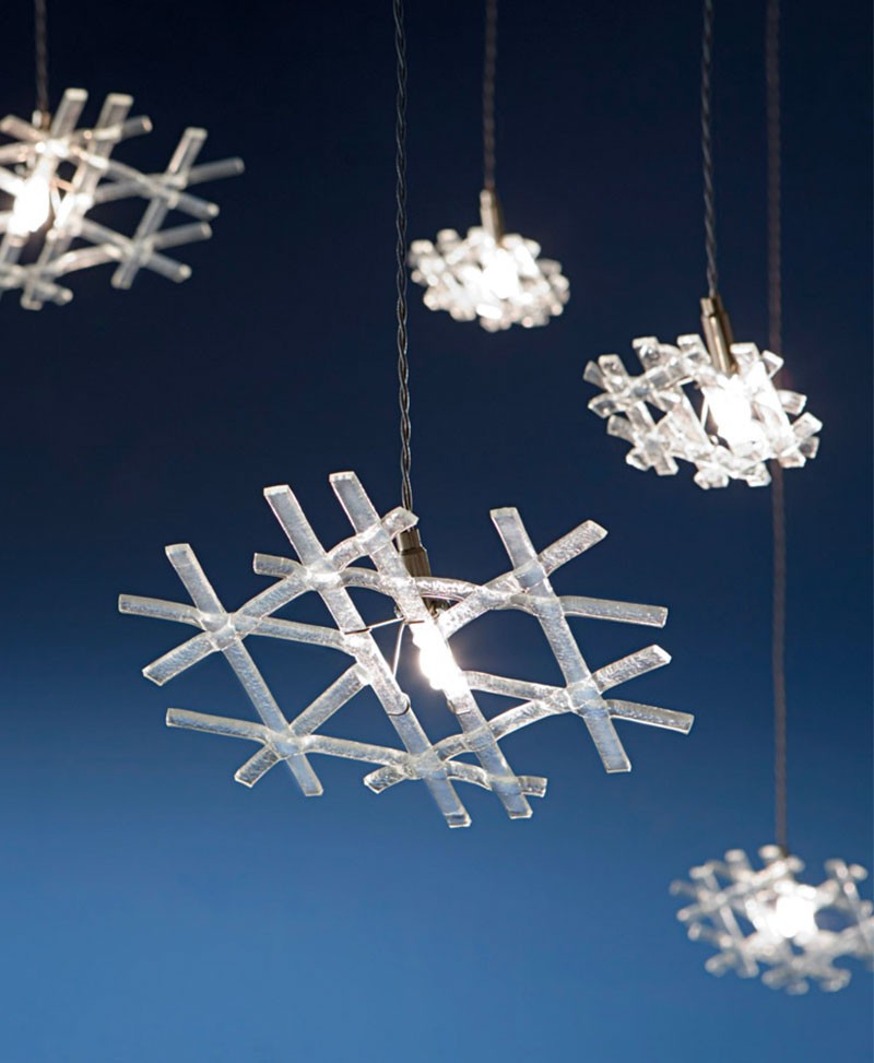 Galaverna fornisce luce diretta per mezzo di una lampadina alogena bispina con riflettore incorporato. Sono realizzati in vetro lavorato artigianalmente con processo termico e sono disponibili in tre diverse misure. E’ un elemento illuminante predisposto per i Sistemi Orbite e Radiale.