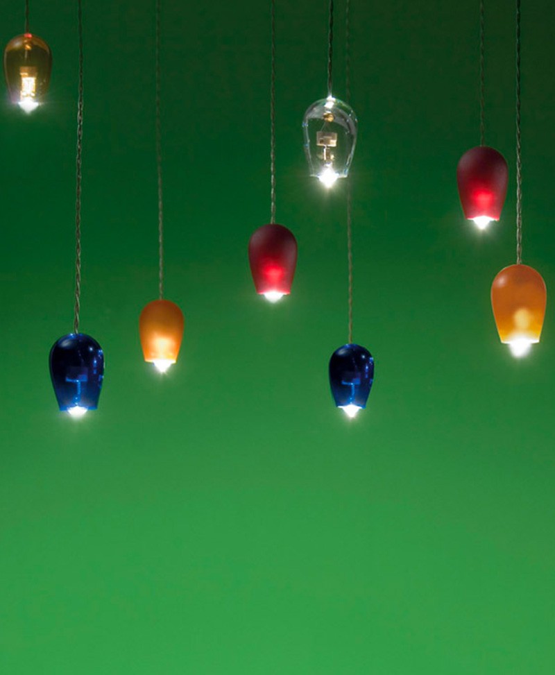 Pendolino fornisce luce diretta verso il basso, con fascio ampio circa 30°, per mezzo di una minuscola lampadina alogena con riflettore incorporato. E’ realizzato in modo artigianale con vetro soffiato a grosso spessore in vari colori. E’ dotata di cavetto a piattina separabile. E’ un elemento illuminante predisposto per i Sistemi Orbite e Radiale.
