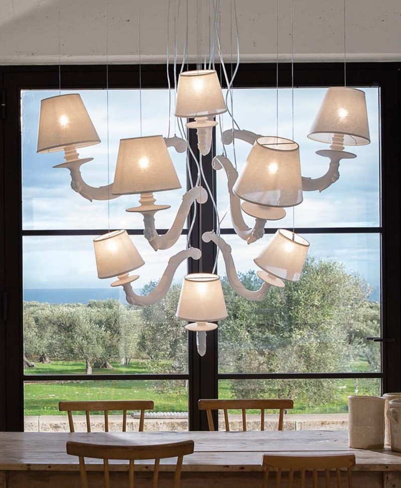 Déjà-vu è il già visto che sorprende, inatteso. Qualcosa che ci appartiene e, insieme, ci sfugge. Come un vecchio lampadario in ceramica, esploso dalla luce. Rivedere la tradizione per lasciarla fluttuare nell’aria. Vincere la gravità e andare oltre il passato, senza dimenticarlo.