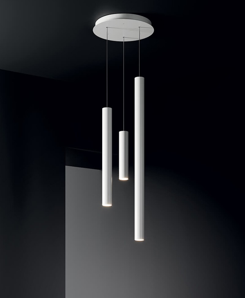 A–Tube è una lampada dal design elegante a forma di cilindro, ideale per illuminare punti ben precisi e arredare con dinamica essenzialità. Disponibile in due versioni, a soffitto e a sospensione, può essere utilizzata sia singolarmente che per creare vivaci composizioni scandite dalle diverse lunghezze e dalle tre finiture (bianco opaco, nero opaco e bronzo ramato). A centro stanza con un’illuminazione multiforme, sopra un bancone in una fila omogenea o in una ritmica successione di linee dalle misure diverse, A–Tube illumina partecipando all’architettura degli interni.