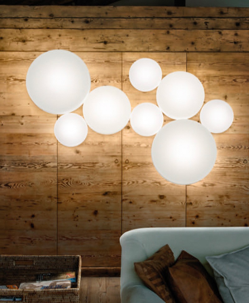 Il design di Make-Up si ispira alla moda e alla bellezza. Lampada modulare in vetro soffiato dalla forma morbida, Make-Up veste di luce la parete o il soffitto. Elegantemente funzionale se usata singolarmente, acquista valore fortemente decorativo nelle vivaci composizioni di dimensioni e volumi diversi.