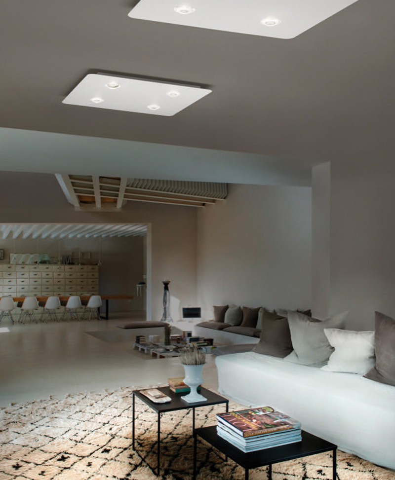 Frozen è una lampada dal design minimalista che sembra aderire al soffitto. Dalla sottile montatura in acciaio verniciato, lenti in cristallo incastonate come gemme diffondono un’armoniosa luce diretta che dà vita all’ambiente. Leggerezza e rigore si uniscono in questa lampada da soffitto dal design essenziale. Frozen esprime la forza della sua semplicità attraverso gli elementi luminosi che prendono forma all’interno della sottile montatura in acciaio verniciato. Le due dimensioni, da usare singolarmente o da accostare liberamente, permettono di ottenere soluzioni di illuminazione per ogni tipologia di ambiente. Il suo spessore ridotto, di soli 4,3 cm, la rende particolarmente funzionale quando l’altezza dei soffitti è limitata. Disponibile in due finiture – bianco opaco e bronzo ramato – Frozen crea un’atmosfera armoniosa che si presta ad accogliere anche altre lampade della collezione.