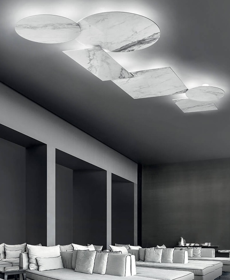 Rotonde, quadrate e rettangolari, le grandi figure geometriche di Puzzle Mega esprimono la bellezza della luce attraverso un design pulito dall’effetto a sorpresa. Un carattere scultoreo essenziale dalla grande forza suggestiva: da spente si fondono con l’architettura interna, eleganti e discrete; una volta accese dipingono pareti e soffitti con inaspettate armonie di luci e ombre. Le tre forme sono disponibili in diverse dimensioni e in due finiture, a scelta tra MDF verniciato bianco opaco e il raffinato gres porcellanato Renoir by Infinity™. Se da sole creano un punto luce sofisticato, in composizione fino a 36 elementi le lampade Puzzle Mega danno vita a creazioni uniche e sorprendenti.
