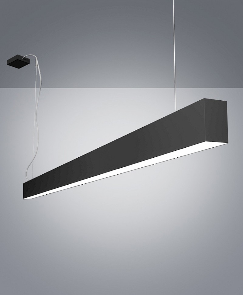 Lampada LED lineare a sospensione con emissione diretta ed indiretta per l’illuminazione tecnica ad elevata efficienza luminosa, emissione controllata e schermatura delle sorgenti.