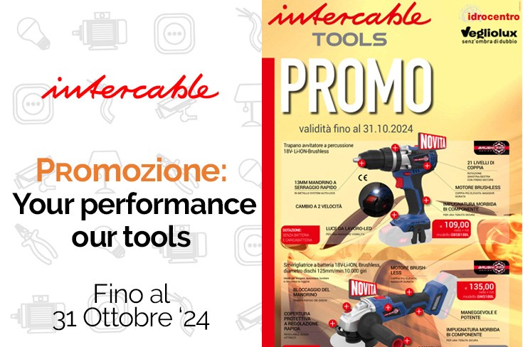 Intercable Your performance our tools 24: trapano avvitatore di precisione, smerigliatrice e molto altro. Da Vegliolux e Idrocentro